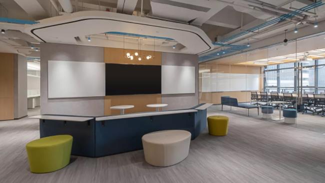 在當(dāng)代辦公方式中,工作的場景其實(shí)是在模糊化和多變的。會(huì)議室既可以用來承接內(nèi)部開會(huì)功能,又能接待訪客;休閑區(qū)不僅僅滿足員工休閑需求,同時(shí)又是滿足員工協(xié)同、靈感溝通的重要場景。