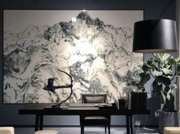 3、總經(jīng)理辦公室裝修,匠心獨具,辦公桌后的山水畫倚墻而立,成為整個房間的亮點所在,復(fù)古的潑墨大理石壁畫,淡泊的寫意感,氤氳肆意灑脫亦無重負的意境。白色的沙發(fā)與大理石圓桌相互配合,既保存了一以貫之的輕奢格調(diào),也不失商務(wù)談判應(yīng)有的沉穩(wěn)氣氛,并且充分保證了座位的充足。一對一的談判桌,配有相應(yīng)的茶具,滿足商務(wù)禮儀之需,也為整個空間增添了文化氣息。
