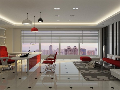 1、時尚服裝公司辦公室門廳裝修設計:采用大紅色為主色調(diào)凸顯了服裝設計公司的一種很奔放的一種美感。前臺和休息區(qū)是一個整體的空間,利用展示架把它們成功的分成了兩個區(qū)域,互相獨立又協(xié)調(diào)統(tǒng)一。紅色的亞克力燈也是很搶眼具有一種很時尚現(xiàn)代的美感并且與會議室互相呼應使整個設計做的比較整體。會議室的窗洞是采用像服裝樣式的異性口開洞凸顯了整個設計主題。辦公空間整個設計用簡約的線條以及時尚的家具打造一種很熱烈奔放富有激情的公司氛圍。