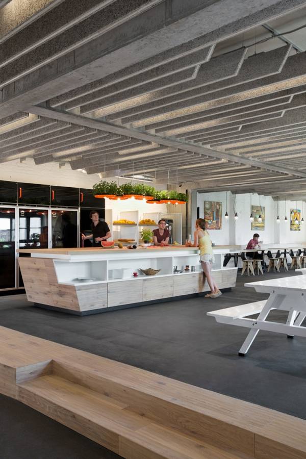 其辦公室裝修設(shè)計(jì)主要以現(xiàn)代的色彩為基調(diào),體現(xiàn)在辦公室墻面、地面、辦公家具以及吊頂?shù)难b修設(shè)計(jì)上。總而言之,SoundCloud柏林總部的辦公室裝修設(shè)計(jì)體現(xiàn)的是一種和諧、自然、環(huán)保的設(shè)計(jì)理念。