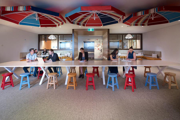 每層都配有舒適的社交空間以契合公司的品牌文化,四個樓層分別以澳大利亞優(yōu)美的環(huán)境象征來命名:景觀公園、美麗的后花園、假日海灘、夏日葡萄園。