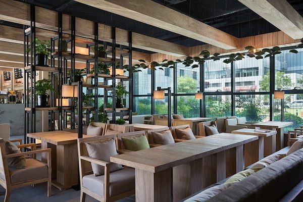 深色木條作為室內(nèi)墻面的主要材料奠定了整個(gè)空間的基調(diào),而整個(gè)中餐廳桌椅和配飾運(yùn)用了不同程度的灰色,營(yíng)造出一種神秘的氛圍,這就是該餐廳裝修設(shè)計(jì)的魅力!