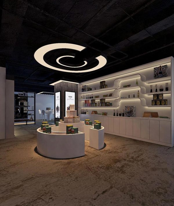 設(shè)計師通過位置、布置、燈光等手段突出重點展品,通過單獨陳列、利用射燈等手段突出、強調(diào)重點展品。