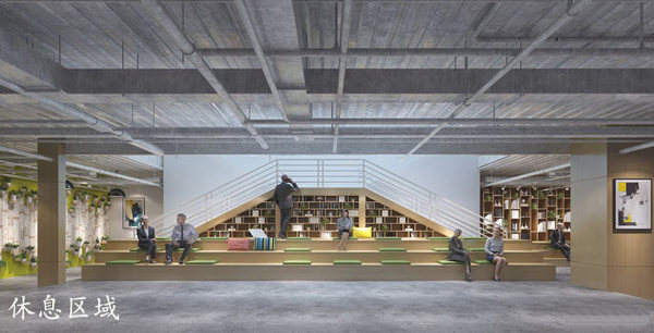 休息區(qū)域的設計:設計師在設計的時候,采用階梯的方式對空間進行設計,在設計師看來不管在生活還是在工作,人都像是在走階梯一般不斷的成長,故此設計師希望讓員工在此處休息、交流的同時,可以回味過去、不斷的總結自己,以求盡快邁入成長的階梯,成長自己促進企業(yè)發(fā)展。