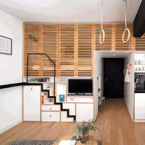 看似簡潔的天花板其實(shí)是供晚上睡的床。