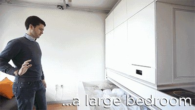 這面移動電視墻可以將整個空間隔離成五個空間。