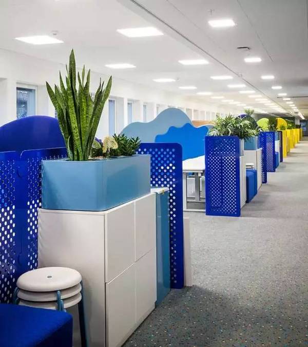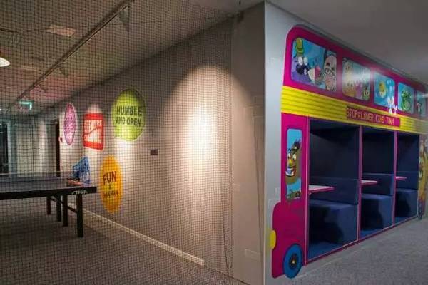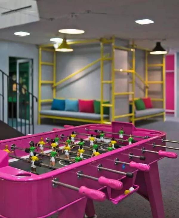 游戲開(kāi)發(fā)商國(guó)王(“糖果粉碎傳奇”的創(chuàng)造者)聯(lián)系設(shè)計(jì)師開(kāi)發(fā)他們的新辦公室概念,其結(jié)果是一個(gè)色彩鮮艷的辦公室。