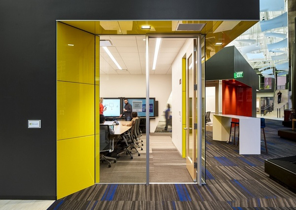 今天,上海辦公室裝修設(shè)計公司-領(lǐng)企裝飾要與大家分享的是,微軟集團位于美國舊金山的辦公室裝修設(shè)計。辦公室的樓面計劃利用了視野和微軟公司的商標來創(chuàng)造第一印象,既引人注目又能馬上被識別出來。目標是在人、場地和技術(shù)之間創(chuàng)造一個平衡。通過創(chuàng)造一個展示逐日變化的技術(shù)的陳列室,建成空間和技術(shù)之間的區(qū)別變模糊了。微軟公司的產(chǎn)品變成了帶領(lǐng)訪客穿過這個空間的車輪。