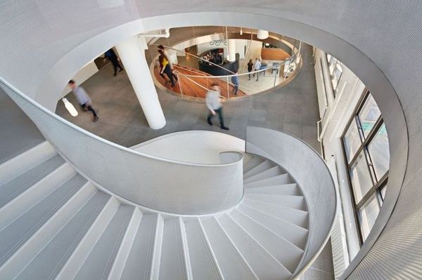 錢幣狀的旋轉(zhuǎn)樓梯垂直連接3層樓。