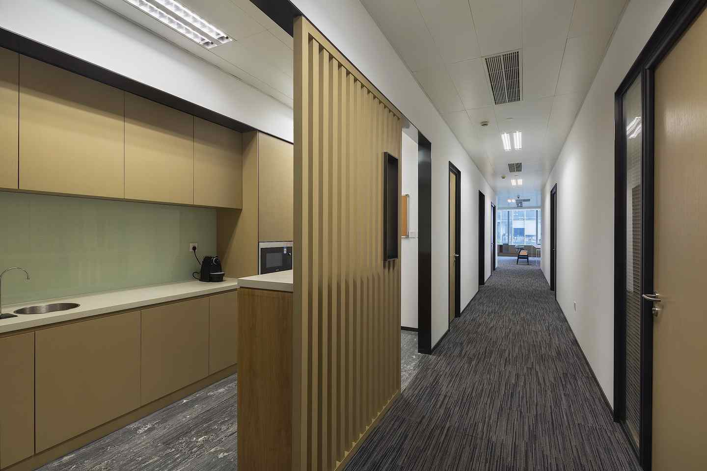 | 都市人文辦公,互動綠色風景 “你站在橋上看風景,看風景的人在樓上看你。明月裝飾了你的窗子,你裝飾了別人的夢?!比伺c人、人與景之間的交織互動在卞之琳的《斷章》里詩意呈現(xiàn),也同樣貼合設計師王兵為同進置業(yè)公司的新濱江辦公室定下的設計思路。他的空間設計結合江景地利、都市人文,在實用功能、格調品位之外,借助綠植規(guī)劃等巧妙手法,進一步突顯地產公司的職業(yè)形象與社會責任,不僅充分納景入室,更樹立起友好對外界面,成為一道嶄新的綠色都市風景。 在設計師王兵看來:“當下多數(shù)的辦公空間設計是一種機械化的、枯燥的、沒有良好溝通界面的設計?!彼运麌L試在辦公空間的設計上做一些變化。新完成的同進置業(yè)公司辦公室位于上海徐匯濱江的綠地中心,在一座雙子樓里。C字形空間南面朝向黃浦江,有極好的江景視野,另有一邊朝向對面雙子樓。 在此基礎上,引發(fā)其室內設計的兩個思考點:首先,作為地產公司的辦公室,怎樣才能既突顯職業(yè)特征、公司形象,又能有設計感,顯示出良好的格調品位?第二,怎樣去分享景觀面,**化納入江景,讓公司員工都能共享到?除此之外,“不只是考慮使用者的需求,同時考慮與外界的互動,這個命題也非常有意思。我們在景觀中,看景的同時,有沒有成為別人的一個好景觀呢?”設計師王兵由此從社會責任感、城市整體面貌的視角更進一步,提出綠色健康的公司形象塑造。 內外互通,綠色形象 辦公空間設計的人性化思考從空間布局可見一斑,在開放式員工區(qū)尤其得到展現(xiàn)。這里一側是*佳江景面,一側朝向對面商務樓,開闊敞亮,風光獨好。面朝商務樓的玻璃窗下設有綠化帶,放置綠植盆栽,無論是身處其間的員工還是對面的人群都能感受到自然的氣息?!懊總€公司都有很多文件柜,怎么把一成不變的文件柜變成有意思的設計,成為我思考的命題?!痹O計師在直面玻璃窗的靠墻文件柜上做出變化,一些有封閉的木門板,一些則是灰框的空格,像玩幾何拼圖一樣,在“灰盒子”里放入綠植,讓平淡乏味的立面瞬間跳脫出來,樹立起一個友好互通的綠色界面。 “現(xiàn)在說到展示公司形象,大家常常關注的是,電梯廳出來看到的是怎樣的標識墻,我覺得這是不夠的,那只是給到訪者的初步印象,對整個城市面貌沒有任何改善意義。公司的社會責任在于,它做的事情是有責任感的,同時它的形象也是有責任感的。這個負有責任感的形象應該體現(xiàn)在一個更大的、對外的面上?!?/span> 員工區(qū)的細節(jié)設計也格外靈活有趣。辦公桌之間的隔擋采用藍色透明板,和綠植一起構成空間亮色,還能作為展示板使用。江景咖啡吧用鏤空英文標語墻與工作區(qū)稍加隔擋,更增空間變化感,這個標語墻同時也是投影幕布的背景支撐。咖啡吧選配的高腳椅在造型上別出心裁,仔細看來椅背不正是有把手的咖啡杯?這些都是營造整體氛圍的重要元素,辦公室并非千篇一律,不一定要枯燥嚴肅,輕松自在些可能更有助于團隊溝通,增強凝聚力。 品質為先,雅致格調 在辦公室的室內裝飾上,同樣從地產公司的職業(yè)特質出發(fā),穩(wěn)重大氣,典雅中不乏設計感,突顯高品位人文素養(yǎng)。因為經(jīng)常跟土地打交道,整體空間色調以自然沉穩(wěn)的大地色系為主,多處使用木料。干凈利落的門廳僅用了灰色大理石鋪地,以木料為背景墻,褐色金屬板作天花,幾何造型接待臺同樣用白色大理石與木料拼接而成,高度詮釋了地產公司的形象。而沿著兩側走廊往里走,踏上柔軟的灰色系地毯,則步入了富有溫情的內在世界。 位于左側的董事長室和總經(jīng)理室*為雅致,用米色壁布包裹墻面,外鑲白橡木框,還細細嵌入鍍鈦金屬條,營造出華麗內斂的典雅風情。董事長室更偏中式,墻面內嵌現(xiàn)代派博古架,放置個人收藏,并設茶席區(qū),以會客功能為主。總經(jīng)理室用橘色稍加變化,增添少許時尚感。走廊墻面特意做出畫框式樣,更好地陪襯多幅藝術畫收藏。 ![]() ![]() ![]() ![]() ![]() ![]() ![]() ?![]() ?![]() ? ?![]() ![]() ![]() ![]() ![]() ![]() |