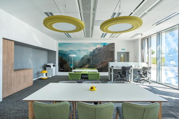 5、富有自然氣息的軟件公司辦公室設(shè)計(jì):辦公設(shè)計(jì)團(tuán)隊(duì)設(shè)計(jì)了三個(gè)可以午休的小空間,配以遮光門簾和床墊。秘密在床墊下,這里配置了重量傳感器,如果有人躺在上面,傳感器就會(huì)迅速響應(yīng)并將信號傳輸至指示燈——ZZZ字母燈就會(huì)亮起,表示此窩已有人占領(lǐng)。 該案辦公室裝修廣泛應(yīng)用環(huán)保建材和天然木材,并在各類休息區(qū)域營造戶外的自然氛圍,以開放的設(shè)計(jì)令室內(nèi)擁有充足的自然光照,這種親生物的設(shè)計(jì)表達(dá)為員工創(chuàng)建了一個(gè)工作與生活平衡的正能量環(huán)境,將他們的空間體驗(yàn)和工作效率提升到更高的水平。