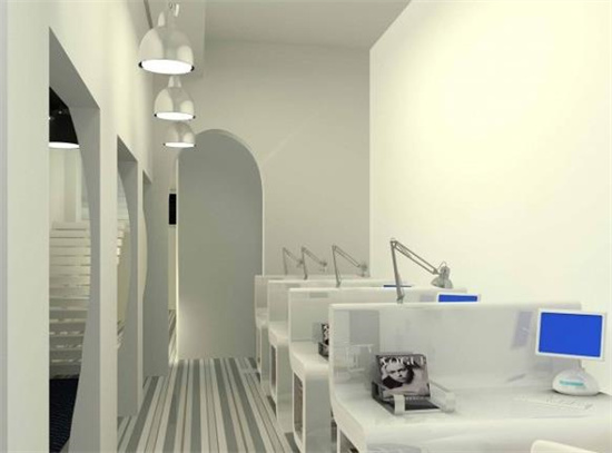 女性雜志社辦公室裝潢:整個空間多采用圓弧來表達女性的柔美,純凈的色彩,意在給人一種靜謐、優(yōu)雅的知性美。
