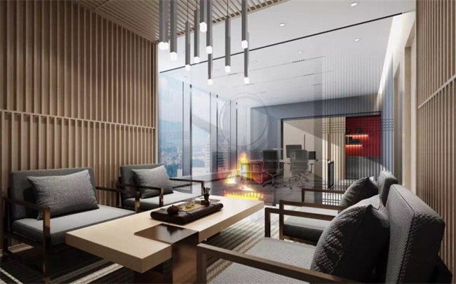 3、集團總裁、總經(jīng)理等領導辦公室裝修設計直接代表著企業(yè)的形象和實力。案例中展示的總裁辦公室為新中式風格,總裁辦公室既有辦公區(qū)也有接待區(qū),方便了總裁接待客戶。新中式風格既凸顯了總裁的儒雅,也體現(xiàn)了企業(yè)務實、內(nèi)斂的特性。