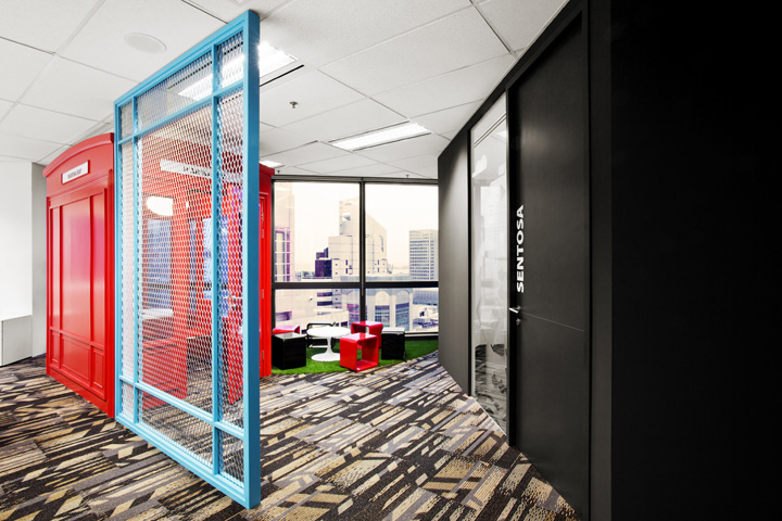 設(shè)計師依據(jù)“旅游”這個公司特質(zhì)將旅游的輕松感受應(yīng)用于辦公環(huán)境的設(shè)計,為員工創(chuàng)造一種時刻在旅途中的新鮮感受,令每天的工作都充滿激情、新鮮與活力。設(shè)計采用折衷手法,將材料、家具、色彩混搭在一起,淺色橡木飾面與明亮的色彩帶來多姿多彩的旅游感受;多種開放場景、裸露吊頂以及自然光線的運用為員工呈現(xiàn)出一個活力與激情的辦公場所。室內(nèi)設(shè)計優(yōu)先考慮員工的工作感受,將工作區(qū)安排在玻璃窗附近,擁有開敞的視野與自然天光;而將不需要光照的資料室放在中心位置也便于取閱。為了創(chuàng)建人在旅途的氛圍,室內(nèi)的通道也做了小小的設(shè)計,比如路牌、廣告燈箱等會令人聯(lián)想到旅游中曾經(jīng)熟悉的場景。