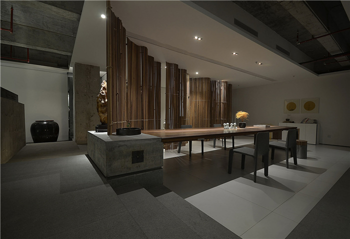 3、360平新中式辦公室設計以新中式為辦公室設計關鍵詞,打造一個有家庭元素的辦公空間,因此在平面構思上是在沒有功能設限的前提下所進行。隨性凌亂的弧線,沒有目的性的劃分出來的空間帶來了意想不到的效果,空間更加富有靈動性,更加生動自然。在此基礎上而后再細分出了各功能區(qū)域的布局。