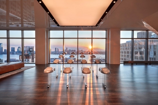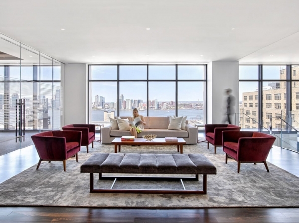 精致皮革裝飾的電梯廳面向開(kāi)敞明亮的休閑區(qū),高大的落地玻璃窗將遠(yuǎn)處哈得遜河的美景盡收眼底。設(shè)計(jì)取消傳統(tǒng)的接待臺(tái)模式,以簡(jiǎn)約的現(xiàn)代禮遇打造個(gè)性化的服務(wù)體驗(yàn)。