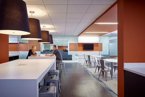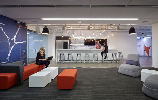 上海裝修公司-康藍(lán)裝飾今天要與大家分享的是,巧妙地利用動(dòng)感光波營(yíng)造辦公環(huán)境的辦公室裝修設(shè)計(jì)。設(shè)計(jì)師為其打造了一個(gè)充滿能量和動(dòng)感活力的辦公室,以繼續(xù)保持不斷增長(zhǎng)的無(wú)限潛力。設(shè)計(jì)師以此為設(shè)計(jì)核心,擴(kuò)建了一個(gè)新空間以補(bǔ)充和強(qiáng)化近期剛完成的改造工程。