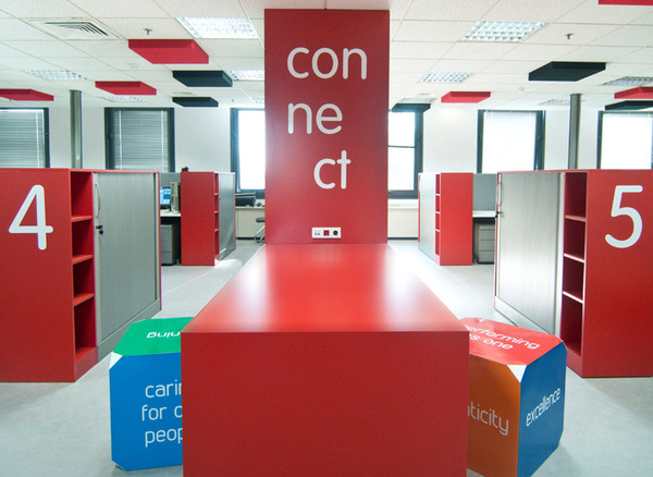上海辦公室裝修公司-領(lǐng)企裝飾今天要與大家分享的是,Coca-Cola公司位于希臘總部的辦公室裝修設(shè)計。辦公室裝修設(shè)計采用了大片的白色與可口可樂經(jīng)典的紅色相搭配,清新悅目的色彩烘托出一個舒適、愉快的工作氛圍。