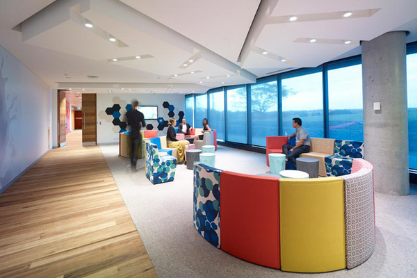 每層都配有舒適的社交空間以契合公司的品牌文化,四個樓層分別以澳大利亞優(yōu)美的環(huán)境象征來命名:景觀公園、美麗的后花園、假日海灘、夏日葡萄園。