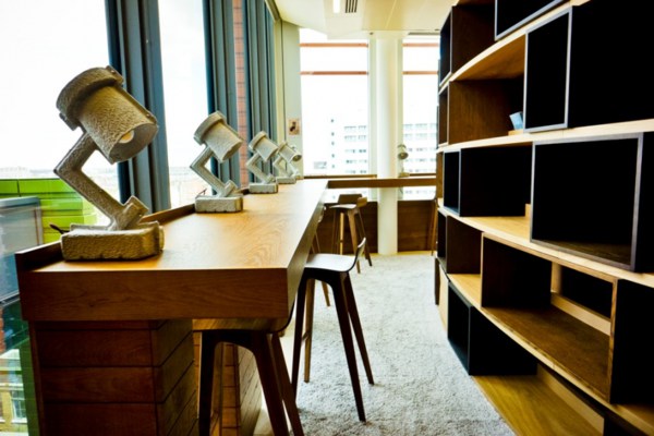 辦公室辦公桌桌板前緣應(yīng)呈圓滑狀的斜邊設(shè)計,或是四分之一圓設(shè)計,以避免傳統(tǒng)的直角設(shè)計會壓迫手肘部份血管的弊病。目前的辦公桌設(shè)計已到了思考延伸的地步,員工在辦公桌前不一定要坐著,有許多需要站著的工作,例如專職查詢、制圖之類的工作,這就需要較高的桌面。此外,在辦公室辦公桌的材質(zhì)選擇方面,也不再局限于鋼制一種,多樣材質(zhì)如強化玻璃、皮革、木材、鋁合金的加入讓辦公桌椅的變化更大,也呈現(xiàn)出更加活潑的面貌。