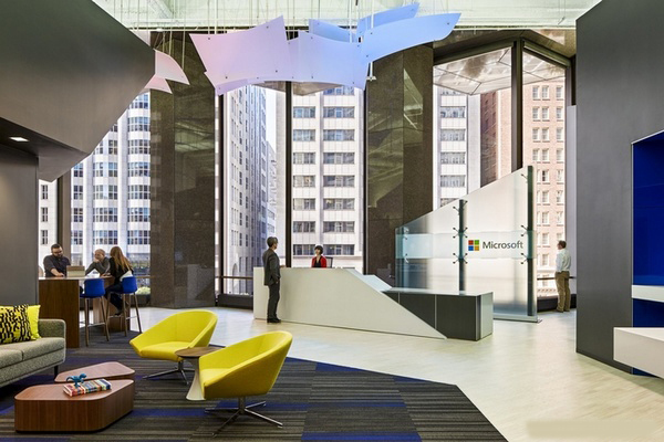 今天,上海辦公室裝修設(shè)計公司-領(lǐng)企裝飾要與大家分享的是,微軟集團位于美國舊金山的辦公室裝修設(shè)計。辦公室的樓面計劃利用了視野和微軟公司的商標來創(chuàng)造第一印象,既引人注目又能馬上被識別出來。目標是在人、場地和技術(shù)之間創(chuàng)造一個平衡。通過創(chuàng)造一個展示逐日變化的技術(shù)的陳列室,建成空間和技術(shù)之間的區(qū)別變模糊了。微軟公司的產(chǎn)品變成了帶領(lǐng)訪客穿過這個空間的車輪。