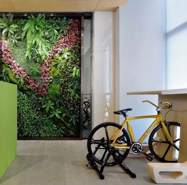 整個空間可以分為公共區(qū)、動區(qū)、靜區(qū)三個大區(qū)域,接待、會議、溝通、儲物區(qū)歸納為公共區(qū);花園工位、水吧、展示區(qū)歸納為動區(qū);員工辦公、休息、經(jīng)理區(qū)歸納為靜區(qū)。在平面分區(qū)上,把公共區(qū)域作為核心區(qū)域,動靜區(qū)根據(jù)采光、結(jié)構(gòu)等建筑條件進行相應(yīng)分布,做到動靜分離同時又讓各功能模塊緊密相連。
