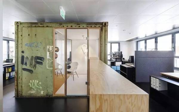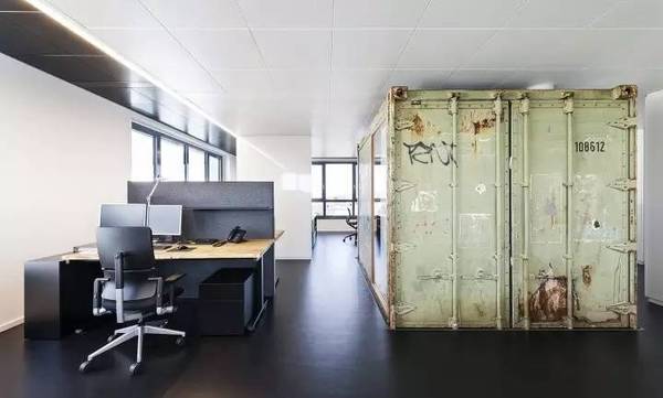 在整個辦公室空間中,與空間“格格不入”的是一個集裝箱,這個有著多次海上經(jīng)歷的集裝箱成為辦公室的亮點(diǎn),在辦公室施工階段,集裝箱被吊進(jìn)室內(nèi),成為內(nèi)部的一間會議室。