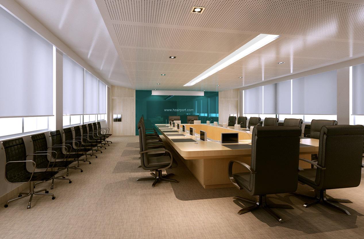 會議桌布置采用排式較好。同時,為減少面部陰影,辦公室裝修設計時,會議桌建議采用淺色桌面或桌布。