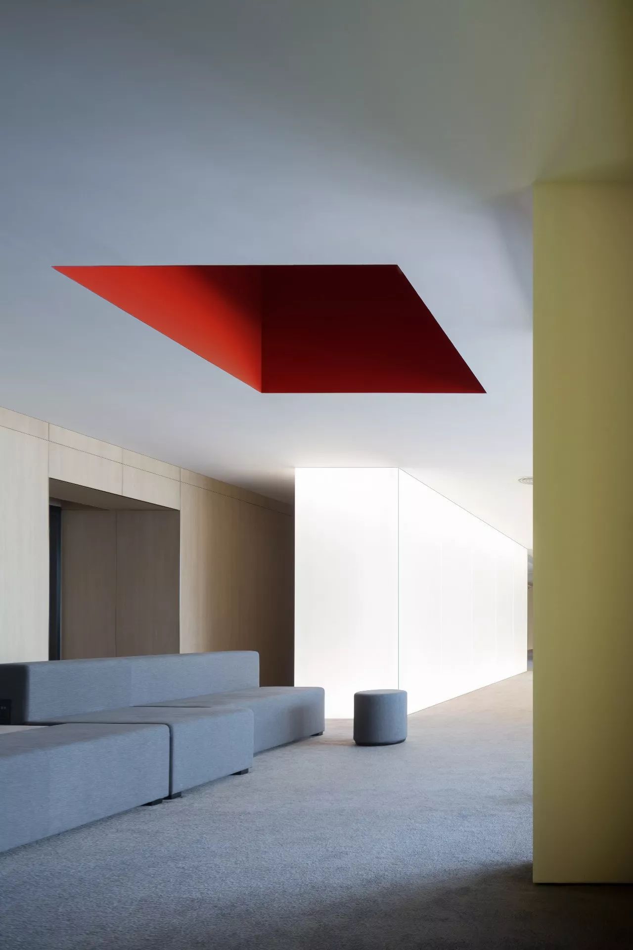 會務(wù)中心層的發(fā)光玻璃墻,滿足了整個(gè)空間的照明,同時(shí)又成為空間的視覺核心,營造出純粹、安靜、脫俗的藝術(shù)辦公空間氛圍。