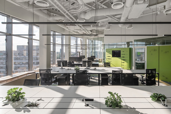 3、混搭風(fēng)格辦公室設(shè)計(jì):原始的混凝土柱和墻壁,以及磚飾面營造出工業(yè)外觀。木質(zhì)元素,大理石細(xì)節(jié)和經(jīng)典的簡約家具則增添了許多優(yōu)雅。線性照明和聲學(xué)結(jié)構(gòu)在開放的白色天花板下動(dòng)態(tài)布置,營造出現(xiàn)代寬敞的內(nèi)部空間,激發(fā)創(chuàng)造性工作。