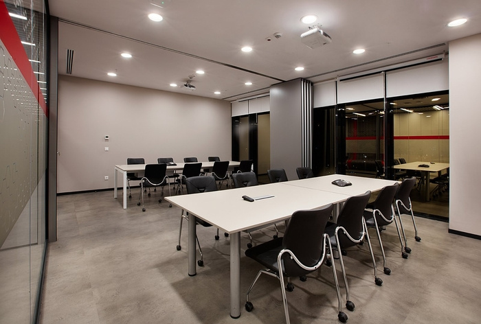 2、其次在上海辦公室設(shè)計時,會議室常常被傳統(tǒng)的分割成單獨房間,然而有時候因為公司的人數(shù)原因無法進行統(tǒng)一的大會,但若是規(guī)劃了大型會議室就又會導致會議室數(shù)量減少從而使用不便。針對于這種情況在辦公室裝修時規(guī)劃出一個大會議室,然后使用活動隔斷將其分開,當需要多人統(tǒng)一開會時便可以將活動隔斷打開增加會議室面積。這樣不僅節(jié)省空間也能使空間更為靈活。