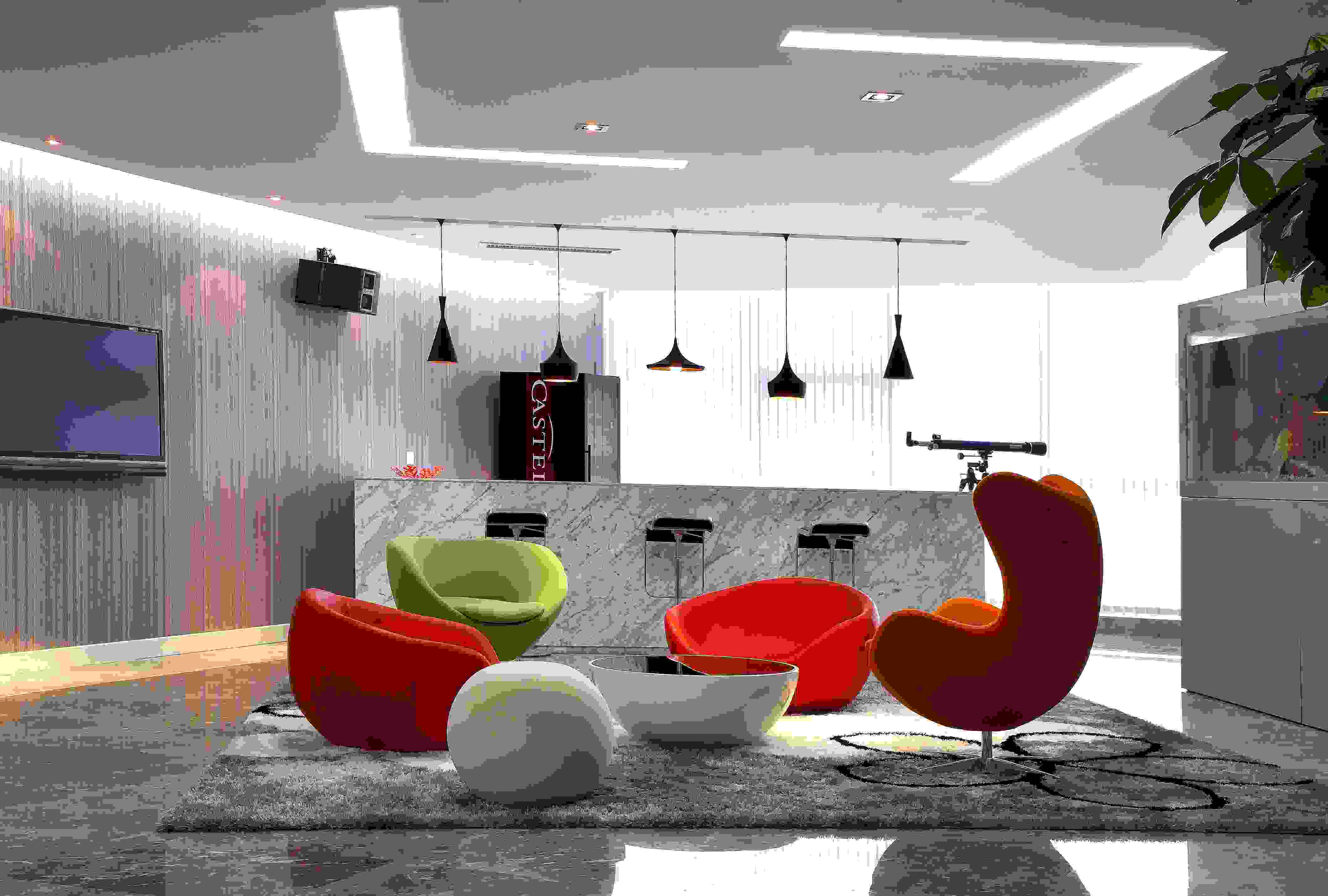 新潮熱烈 使用幾何圖案作為設(shè)計(jì)元素,明亮度對(duì)比強(qiáng)烈,使用新式裝修材料。適用于新興的電腦資訊業(yè)、媒體行業(yè)。
